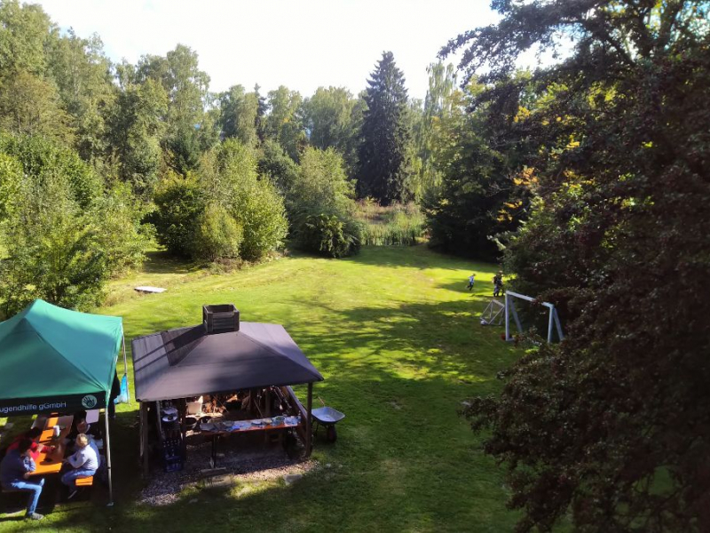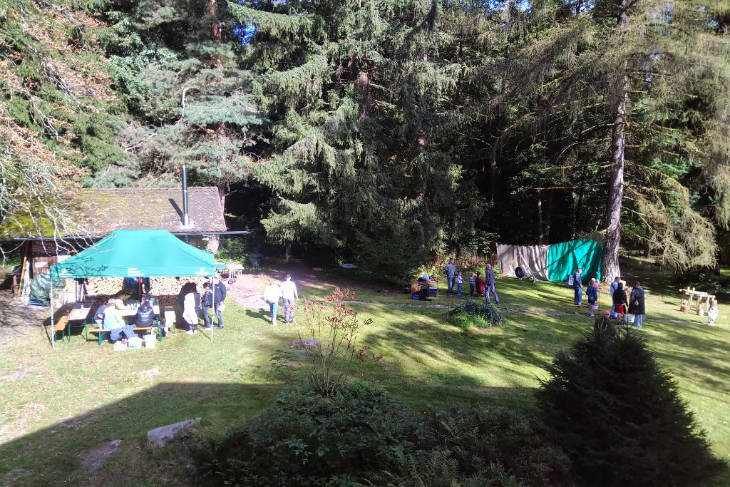 Und nun zum Elterntag, welcher jedes Jahr traditionell im Herbst stattfindet und das Team mit den Eltern und den Kindern in entspannter Atmosphäre zusammenbringt. Dieses Jahr gab es wieder die Möglichkeit Bogenschießen auszuprobieren, an einer Kreativstation in der Werkstatt Laubsägearbeiten zu kreieren, eine Waldseilbahn zu testen und noch so manches mehr. Kulinarisch wurden die Besucherinnen und Besucher auch heuer wieder mit Janos´berühmten Langos vom Feuer in unserer Grillhütte verwöhnt und mit Kaffee und selbst gebackenem Kuchen beim Waldlager, welches ebenfalls einen neuen "Anstrich" bekommen hat durch einen alten Fallschirm als Überdachung.